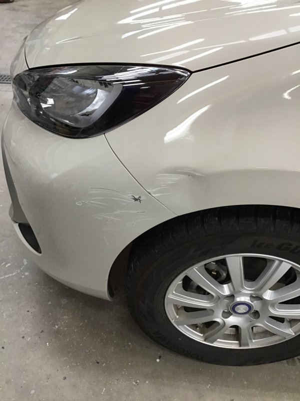 フロントバンパー・左フロントフェンダー キズ ヘコミ修理