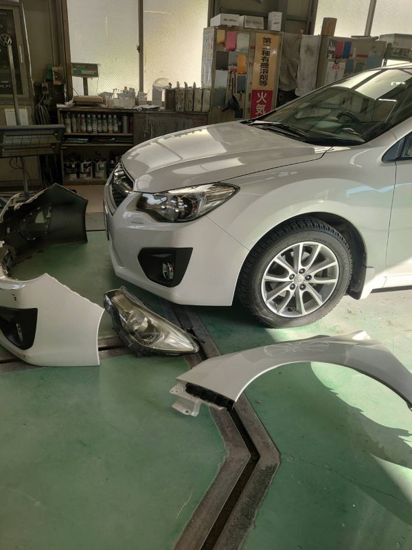 長野県長野市|インプレッサ(スバル)のキズ・へこみ直し事例(フロントバンパー、フェンダー交換作業)