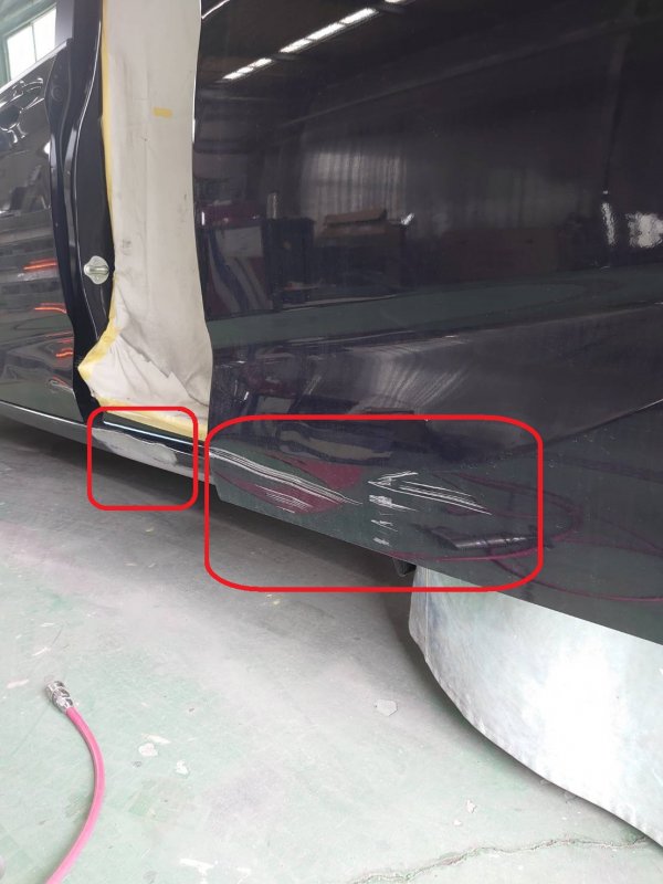 | 修理の箇所・サービス内容 | フロントドア、リヤドア(スライドドア)、サイドシルパネルキズ・ヘコミ修理作業 |