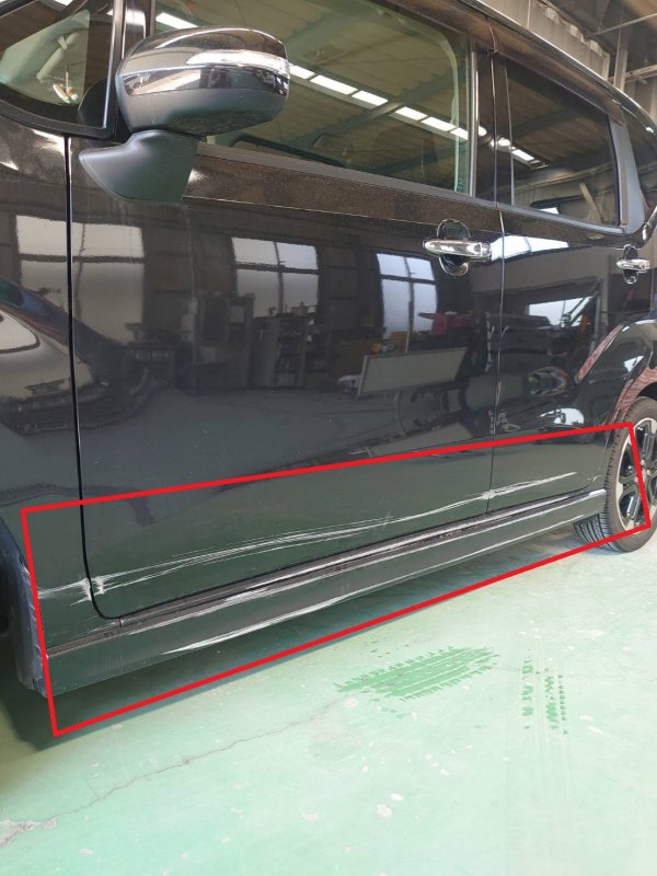 | 修理の箇所・サービス内容 | フェンダー、フロントドア、リヤドア、クオーターパネル、ロッカーカバーキズ・へこみ修理作業 |