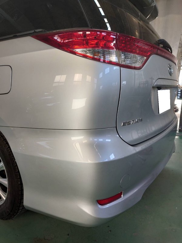今回は、当店で修理させていただいた事例をご紹介したいと思います。トヨタの人気ミニバン、エスティマ(平成27年式 アエラス)のお客様から、リヤバンパーのキズとヘコミ修理のご相談をいただきました。
