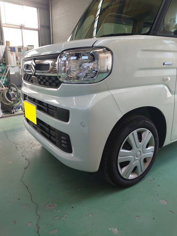 今回は、日頃からメンテナンスなどで当店をご利用いただいているお客様より、「フロントバンパーにキズとヘコミができてしまった」とのご相談をいただきました。お車はスズキ・スペーシアです。