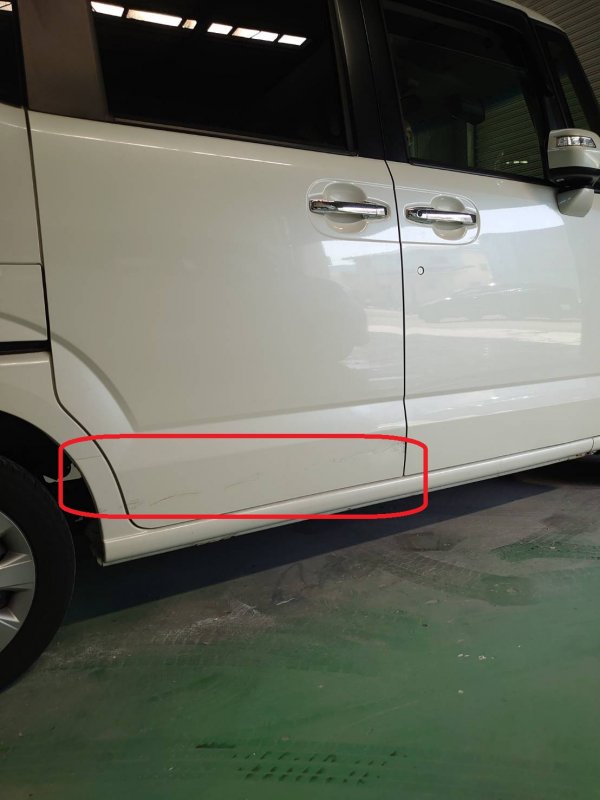 【鈑金作業事例|ホンダ N-BOX 右フロントドア・リアドア・リヤバンパー キズ・ヘコミ修理】