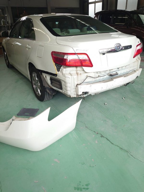【鈑金作業事例|トヨタ カムリ リヤバンパー交換・キズ・ヘコミ修理】