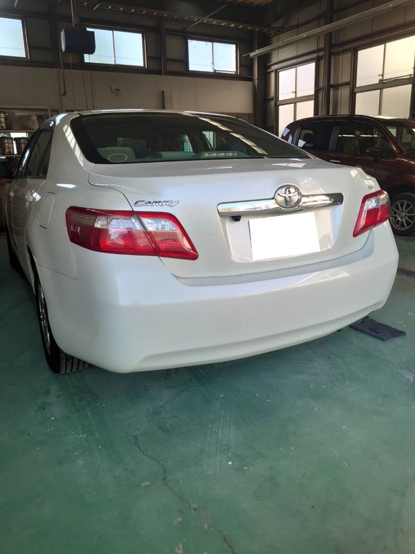カーコンビニ倶楽部 八光自動車のスタッフです。今回は、トヨタ・カムリのリヤバンパー交換とキズ・ヘコミ修理の事例をご紹介いたします。日頃より当店でメンテナンスをご利用いただいているお客様から、「リヤバンパーにキズ・ヘコミができてしまった」と修理のご相談をいただきました。