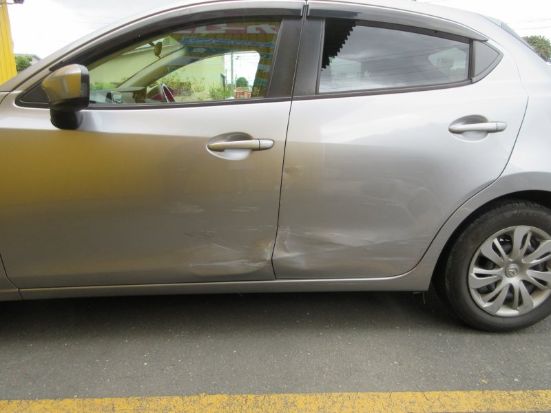 北上 デミオ 左フロントドア、リヤドア損傷 中古部品使用