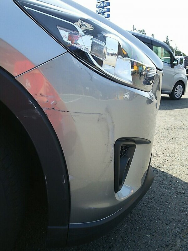 | 修理の箇所・サービス内容 | フロントバンパー色なし+塗装取替、ヘッドライト取替、フェンダー部 |
