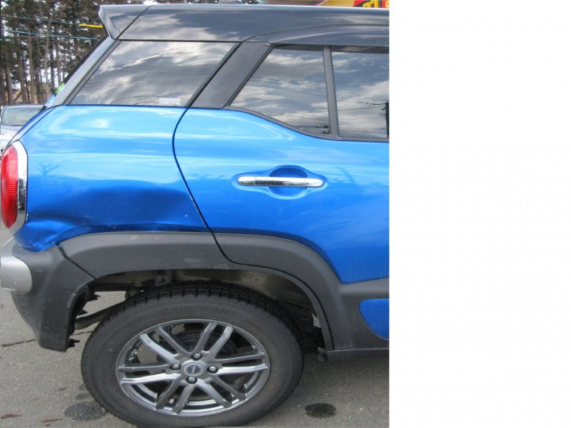 黒い部分はプラスチックで作られている素地部分で、鈑金修理不可のため取替しかありません。へこみ具合も複雑で大きい状態だったため取替作業しました。