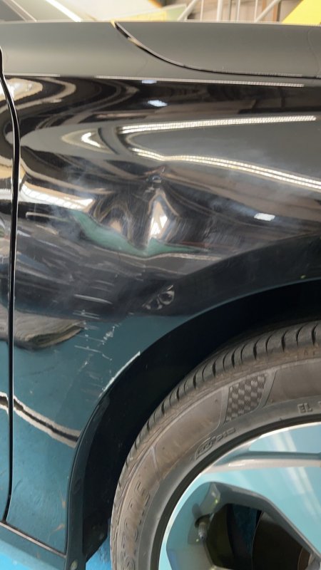 右フロントフェンダーのヘコミ、キズを鈑金・塗装させて頂きました