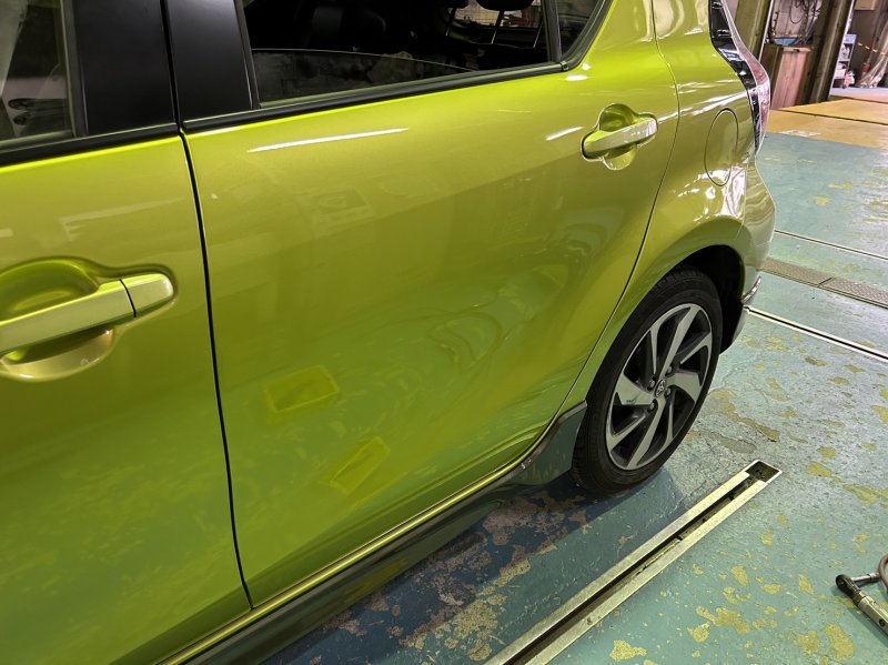 神戸市 西宮市 芦屋市 東灘区 車 トヨタ アクア ヘコミ キズ 修理 鈑金 塗装 早い 安い