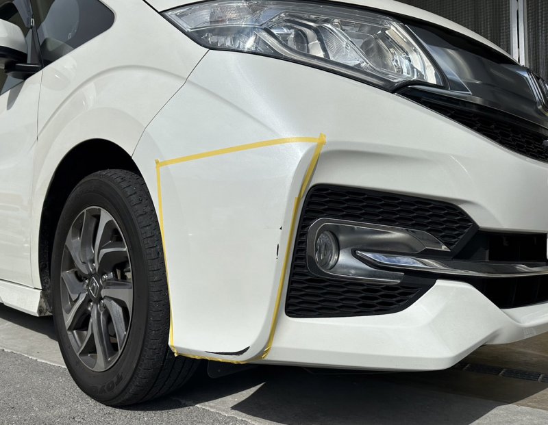 ホンダ フィット フロントバンパー 取替 右フェンダー キズ へこみ 修理 岡山 赤磐市