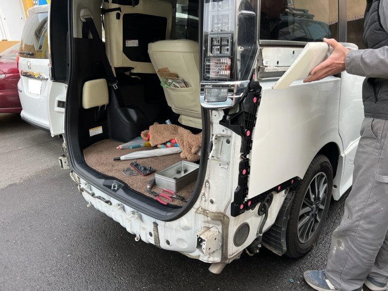 キズへこみが広範囲に及び、今回はリアバンパー交換となりました。