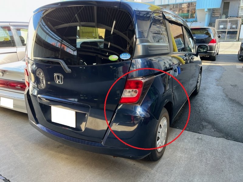 川崎市 フリード 右後ろドア/右クォーター/リアバンパー キズへこみ修理