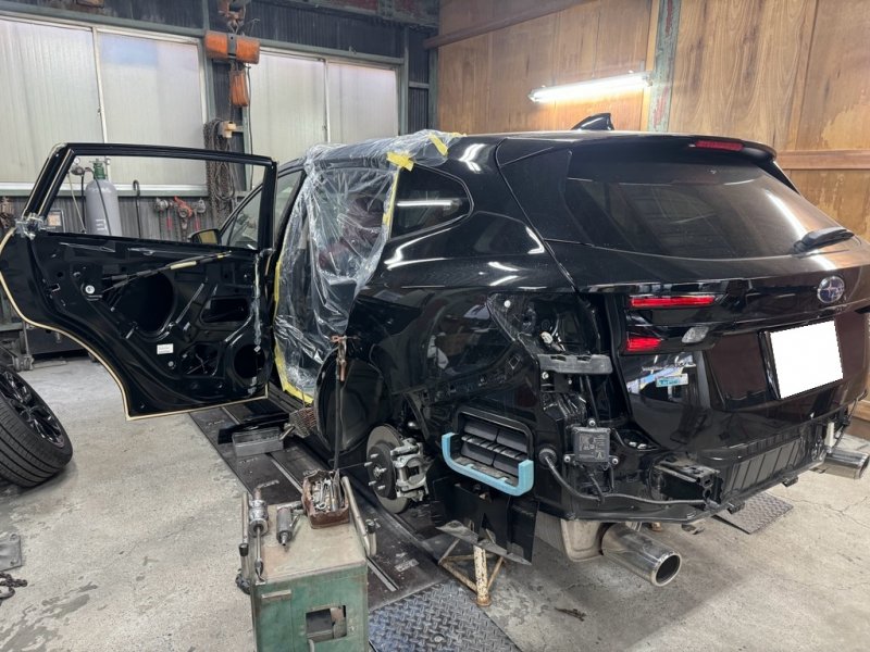 【川崎市・横浜市・大田区・世田谷区・品川区・目黒区】 レヴォーググレイバック リアバンパー/左クォーター/左サイドステップ/左後ろドア キズへこみ修理