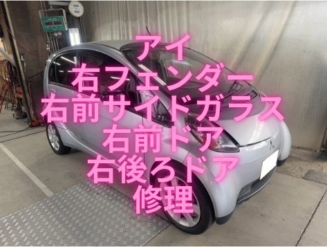 【川崎市・横浜市・大田区・世田谷区・品川区・目黒区】 アイ 右フェンダー/右前サイドガラス/右前ドア/右後ろドア キズへこみ修理