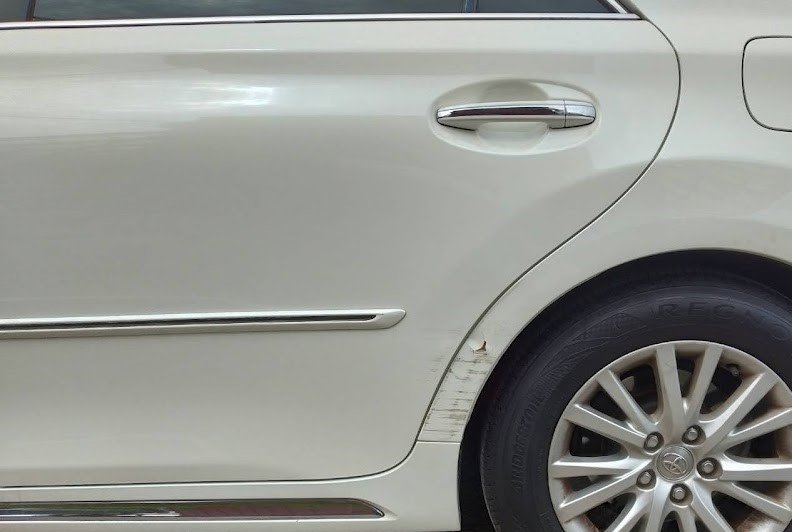 | 修理の箇所・サービス内容 | 左後ろドア タイヤ前(フェンダー) キズ ヘコミ 修理 鈑金 |