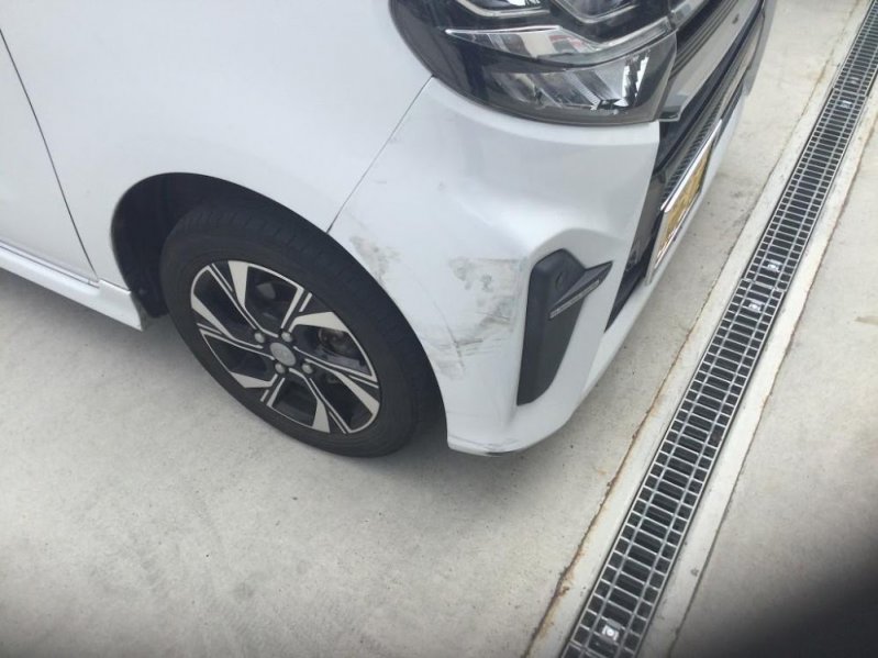 お客様より「電柱に接触してしまい、車の側面にキズがついた」とのご相談をいただきました。
