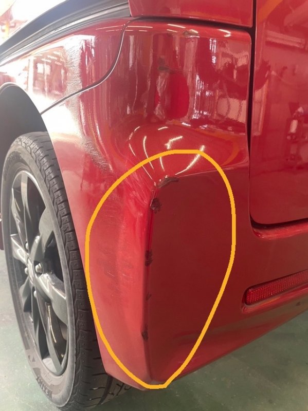 広島県福山市|スペーシアカスタム(スズキ)のキズ・へこみ直し事例(リヤバンパー)