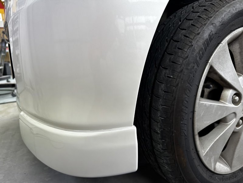 お客様が左折時のブロックに接触しキズが発生。当店のホームページを見てご来店頂き、修理のご依頼を頂きました。