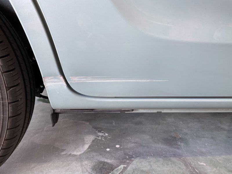 お客様が走行中に、壁にこすってしまいキズが発生。当店のホームページを見てご来店頂き修理見積のご依頼を頂きました。