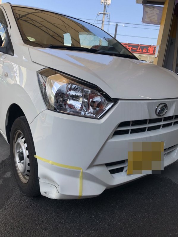 お客様が左折時にブロックにぶつかってしまい、キズとヘコミが発生。
