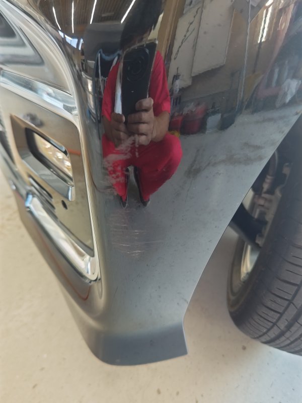 福井県福井市|マーチ(日産)のキズ・へこみ直し事例(左フロントバンパー、左フロントフェンダー修理)