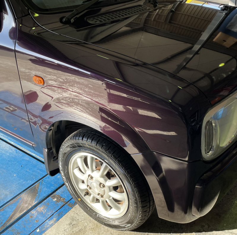 スズキ アルトラパンのフロントフェンダーの修復です。