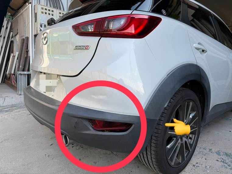 愛知県名古屋市南区|CX3(マツダ)のキズ・へこみ直し事例(リヤバンパー交換、右レフレクター交換、バックパネル修理)