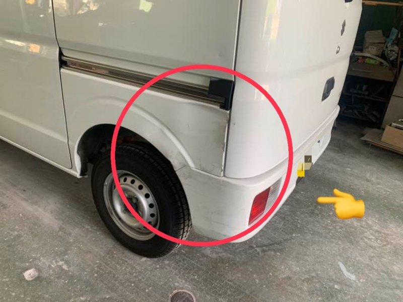 愛知県名古屋市南区|エブリィ(スズキ)のキズ・へこみ直し事例(リヤバンパー交換、バックドア修理、左クォーターパネル修理)