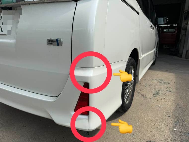 愛知県名古屋市南区|ヴォクシー(トヨタ)のキズ・へこみ直し事例(リヤバンパー修理、左リヤレフレクター交換)