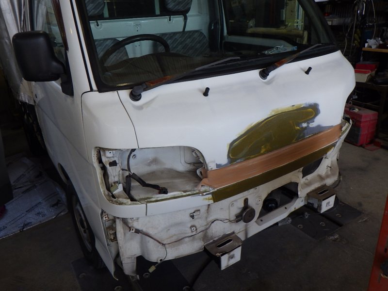 今回はダイハツのハイゼットトラックのフロントパネルの修理です。