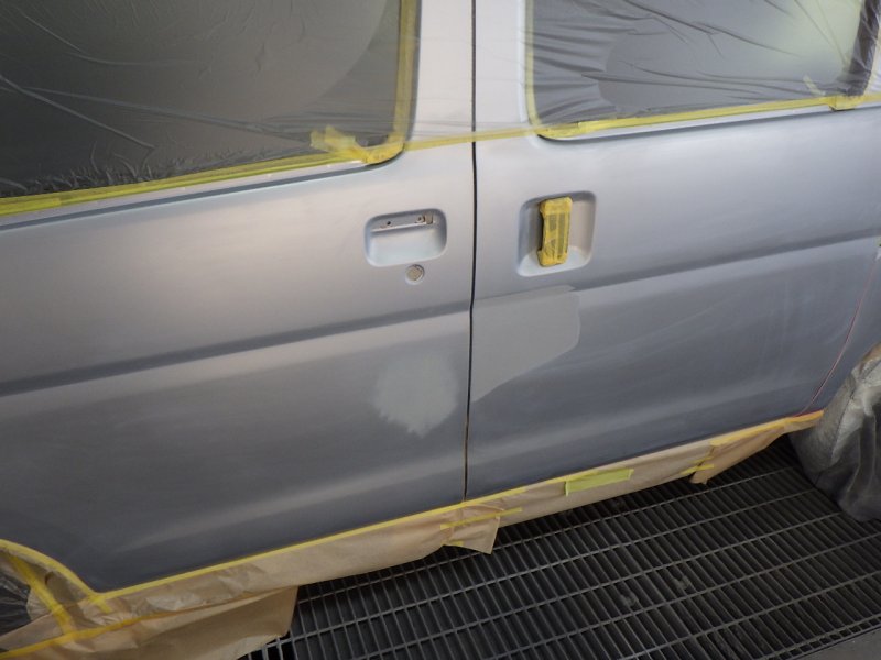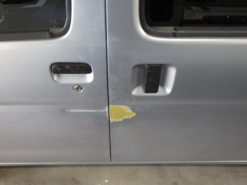 比較的状態の良い中古部品が見つかった為フロントドアは交換し、スライドドアはパテで傷を埋め平らにします。