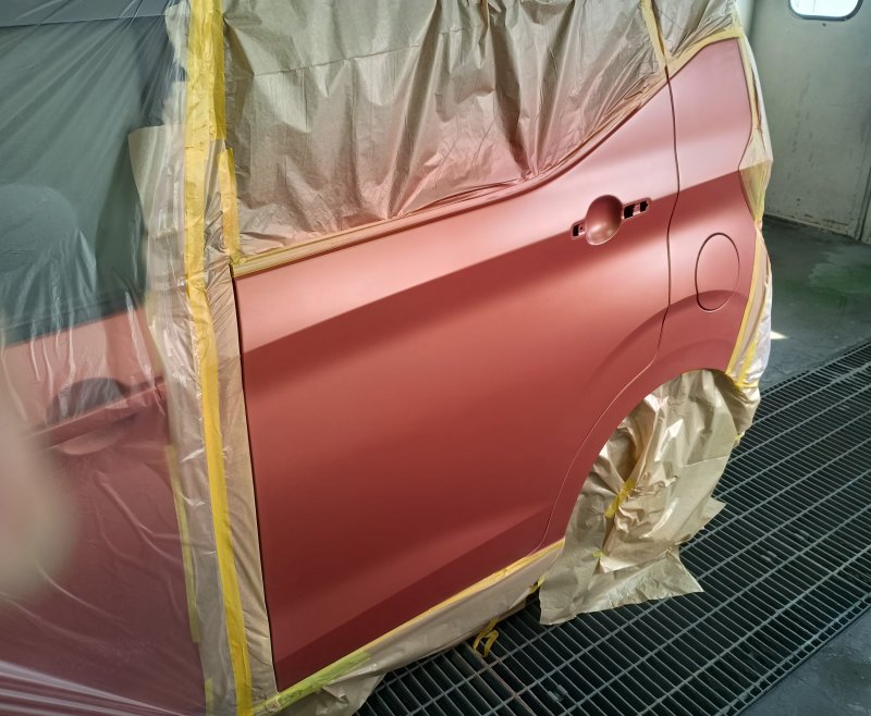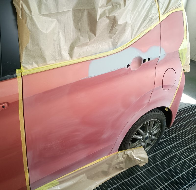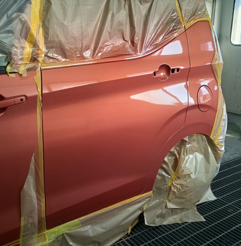 塗装の基本は主に2コート、3コートとあり、色を吹いて乾燥させたらクリア塗装をして保護します。