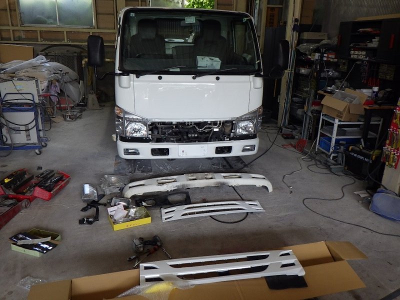 【長野県 北佐久郡 御代田町 軽井沢町 佐久平 小諸市】 いすゞ ELF フロントパネル 鈑金修理 いすず イスズ ISUZU エルフ トラック 追突