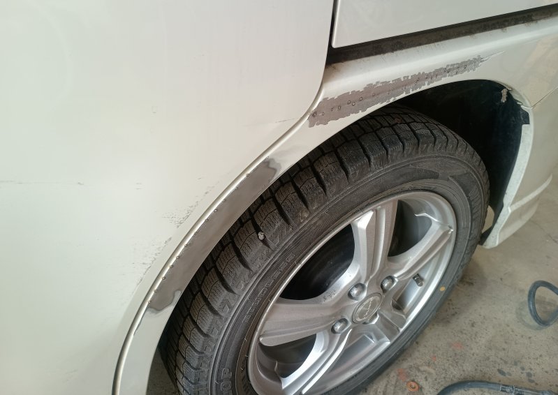 鈑金したらパテで均します。
