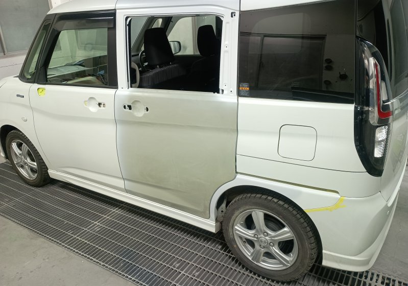 【長野県 北佐久郡 御代田町 軽井沢町 佐久平 小諸市】 スズキ ソリオ スライドドア 新品交換 クォーター 鈑金塗装 パールホワイト