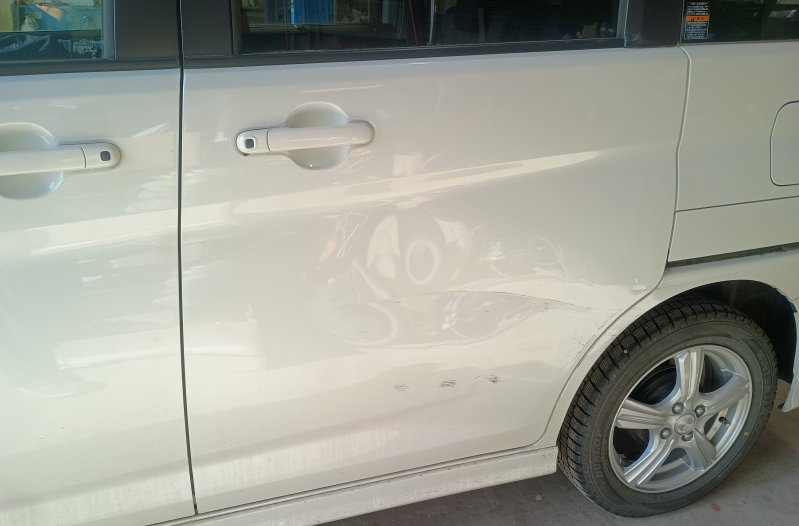 御代田町 佐久市 軽井沢町 キューブ 左ドア前後キズへこみ修理