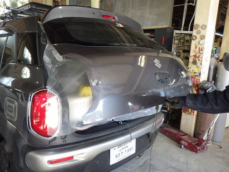 【長野県 北佐久郡 御代田町 軽井沢町 佐久平 小諸市】 スズキ クロスビー SUZUKI XBEE リアゲート バックゲート 鈑金塗装 鈑金修理 ガンメタリック