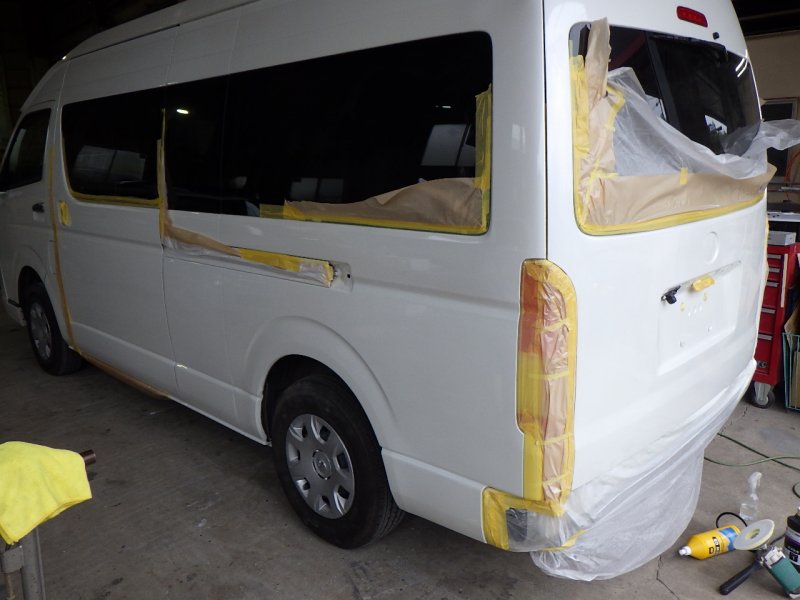【長野県 北佐久郡 御代田町 軽井沢町 佐久平 小諸市】 トヨタ ハイエース グランドキャビン クォーター修理 リアゲート修理 鈑金修理 パールホワイト