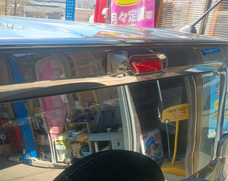 フロント(写真3枚目)&リア(写真4・5枚目): 配線が露出しないよう、パネル内部を通してスッキリと。リアゲートの開閉時にも邪魔にならないよう、最適な位置へ配置しました。