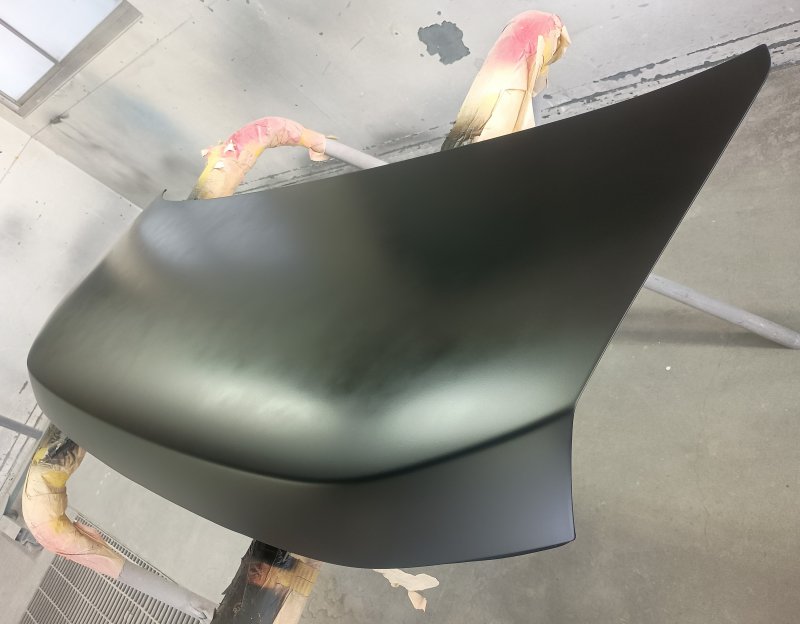 そのままでは艶がありますが、あえて塗装を施し、元のラッピングと同じ質感の「つや消しブラック」を再現!ラッピング剥がれの心配もなく、耐久性の高い仕上がりになりました。