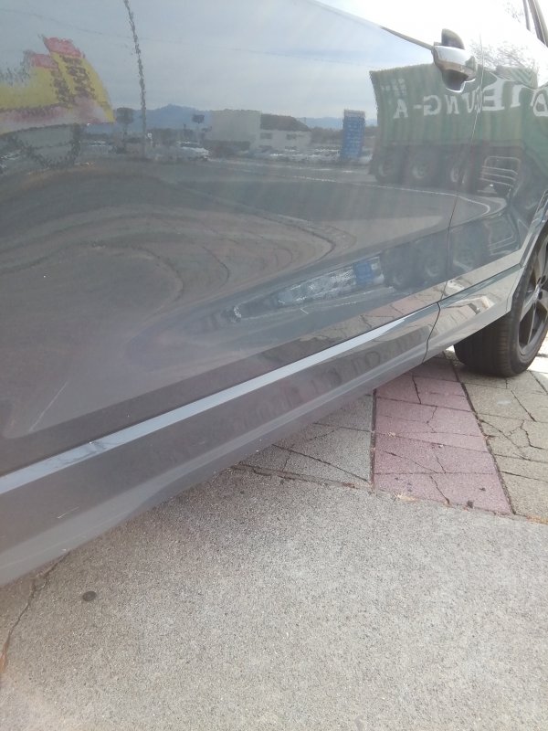 フロントバンパーの下部に擦り傷と左フロントドアに凹みがありました。バンパーは塗装修理しドアはデントリペアという修理方法で修理をしました。