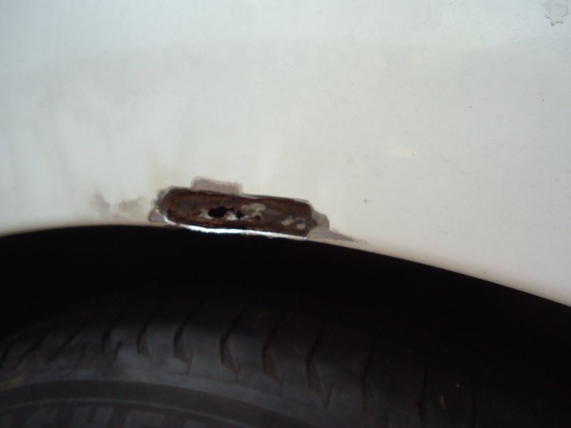 リヤフェンダーのさびは広範囲にパネルの中で広がっているため、一度修理しても完全に直ることは難しいです。