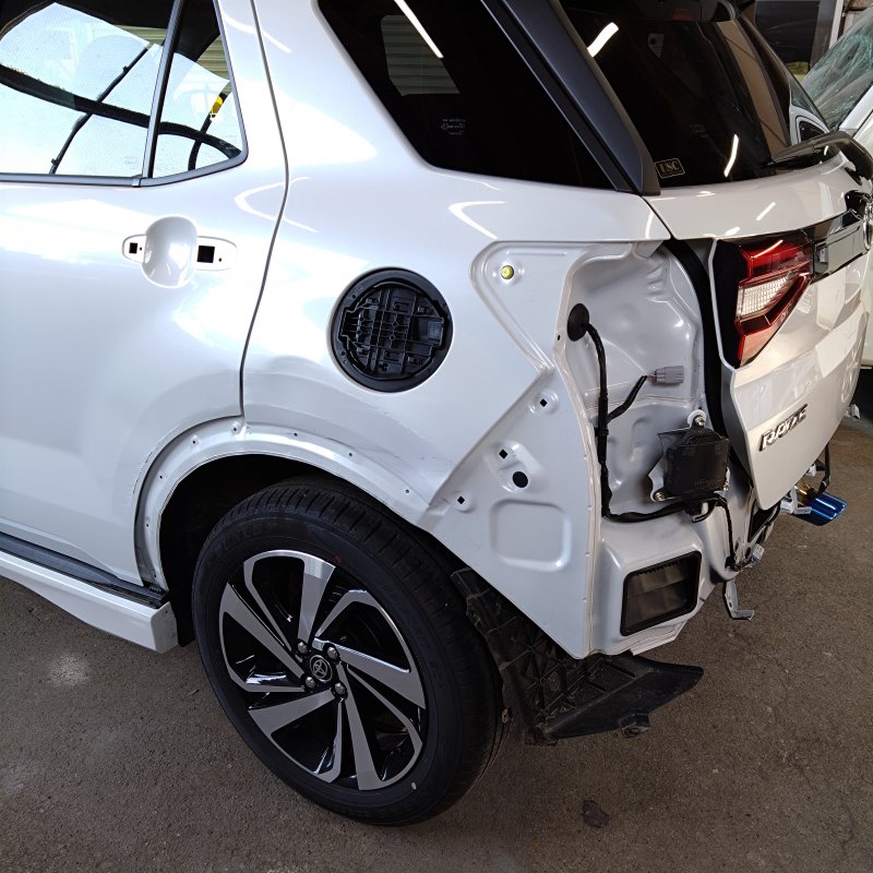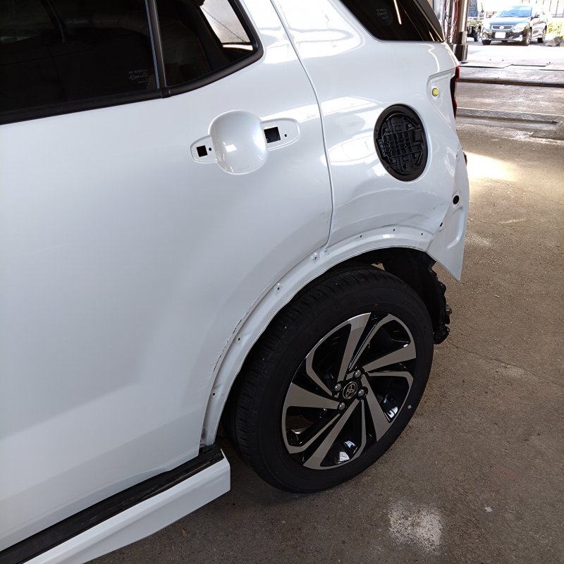今回は、トヨタ・ライズの左側面(左リヤドア、左リヤクォーター、左サイドステップ、リヤバンパー)の広範囲のスリキズ修理をご紹介します🚗💨