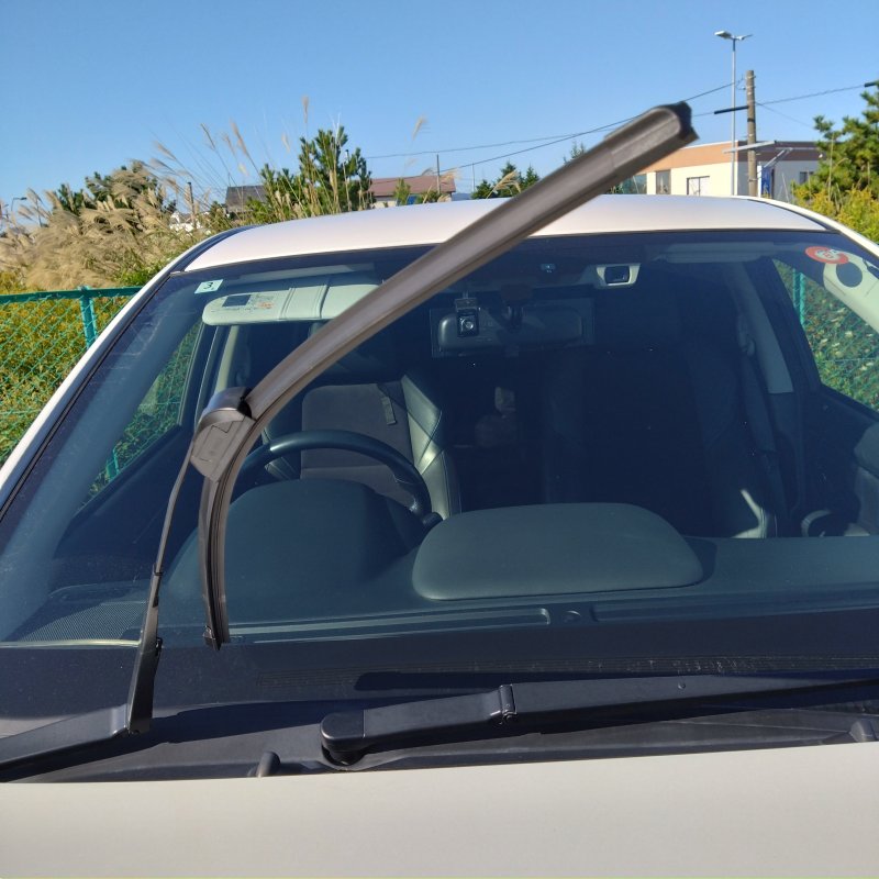雪が降る北海道では冬用ワイパーへの交換が必須ですが、函館のように雪がそこまで降らない地域であれば、一年中このままでいけそうな期待を込めて装着してみました。