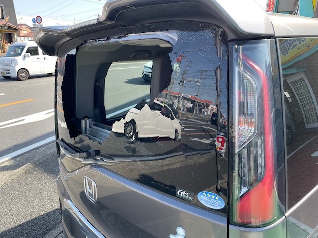 にあたった為リアガラスが割れてしまいました。