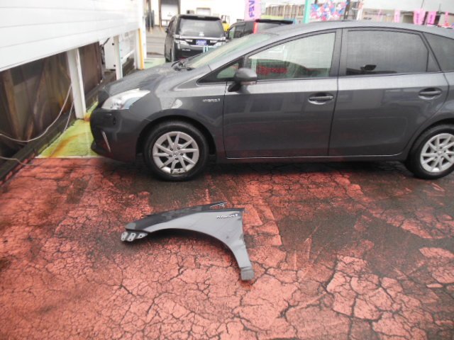 保険修理で入庫したプリウスαになります。フェンダー交換とフロントドア鈑金修理させていただきました。修理後は、お客様にも修理した箇所が解らないと言っていただき修理に大変満足していただきました。