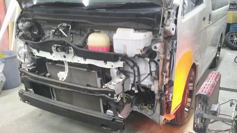 神奈川県座間市|ハイエース(トヨタ)のキズ・へこみ直し事例(Fバンパー交換 左ライト交換 左Fフェンダー鈑金 左Fドア鈑金 左ドアミラー交換)