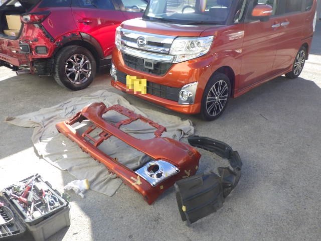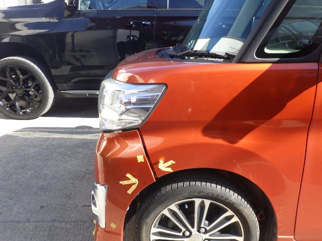 神奈川県座間市|タント(ダイハツ)のキズ・へこみ直し事例(フロントバンパー交換 左フロントフェンダー鈑金)