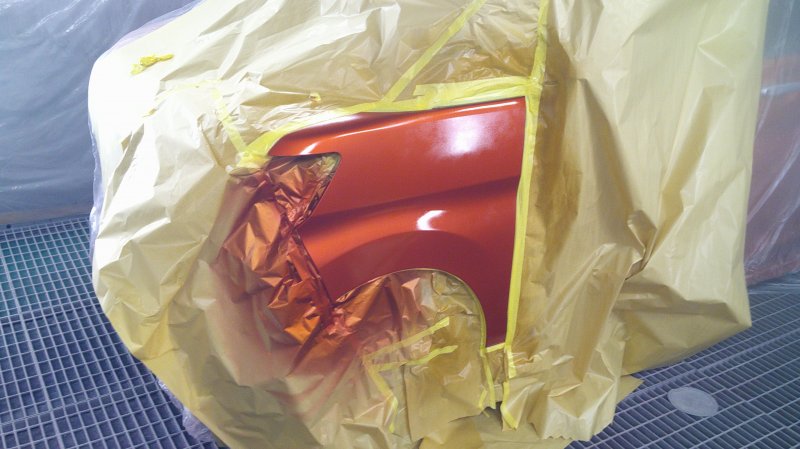 左フェンダーは補修で出来るので、再塗装を行いました。